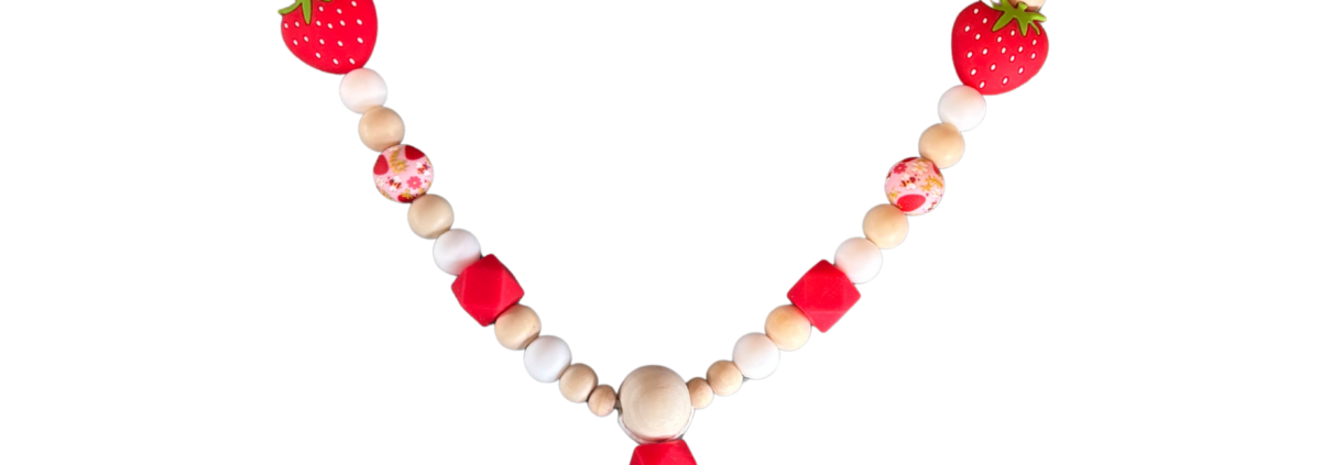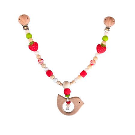 Kinderwagenkette rot Erdbeere „Vogel“