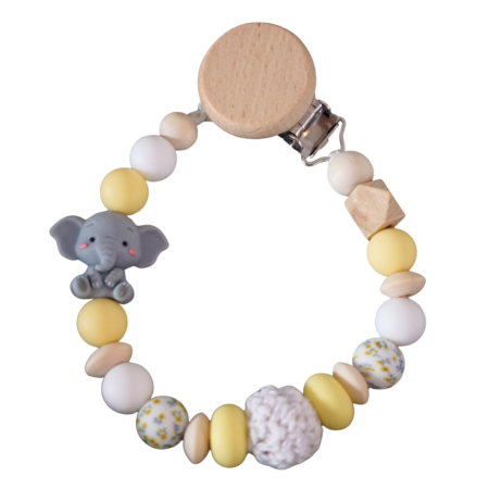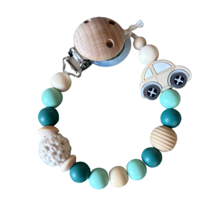 Perlen Schnullerkette blau/grau „Heißluftballon“