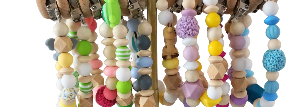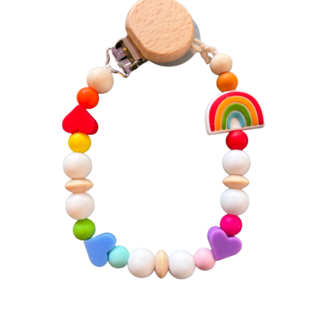 Perlen Schnullerkette bunt „Regenbogenherzen“