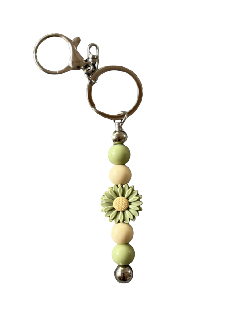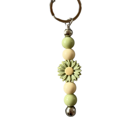 Schlagwörter: Beige, Blume, grün, Schlüsselanhänger, Silikonperlen