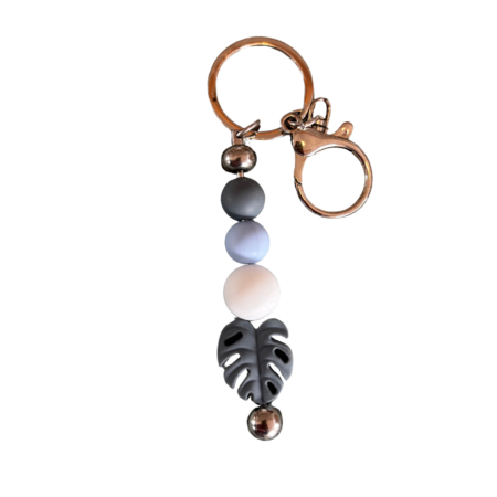 Perlen Schlüsselanhänger grau/blau „Blatt“