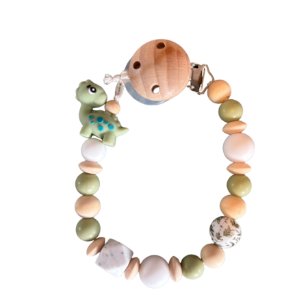 Perlen Schnullerkette grün/weiß „Dino“