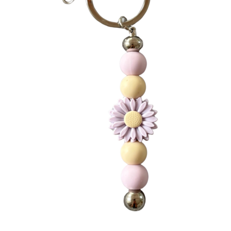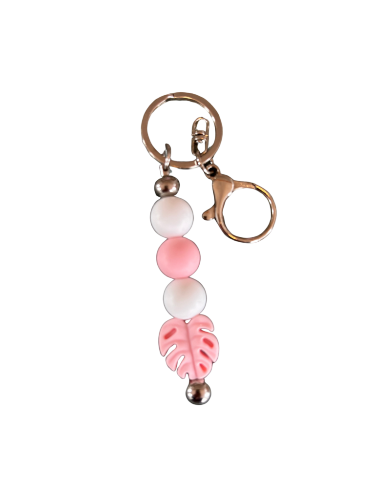 Perlen Schlüsselanhänger rosa/weiß „Blatt“