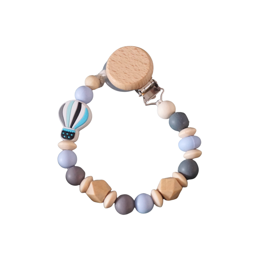 Perlen Schnullerkette blau/grau „Heißluftballon“