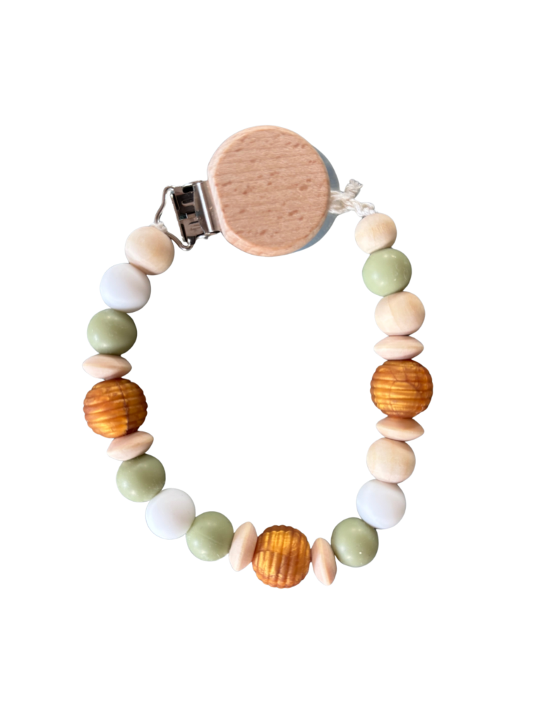 Perlen Schnullerkette in der Farbe Grün, Gold und Weiß