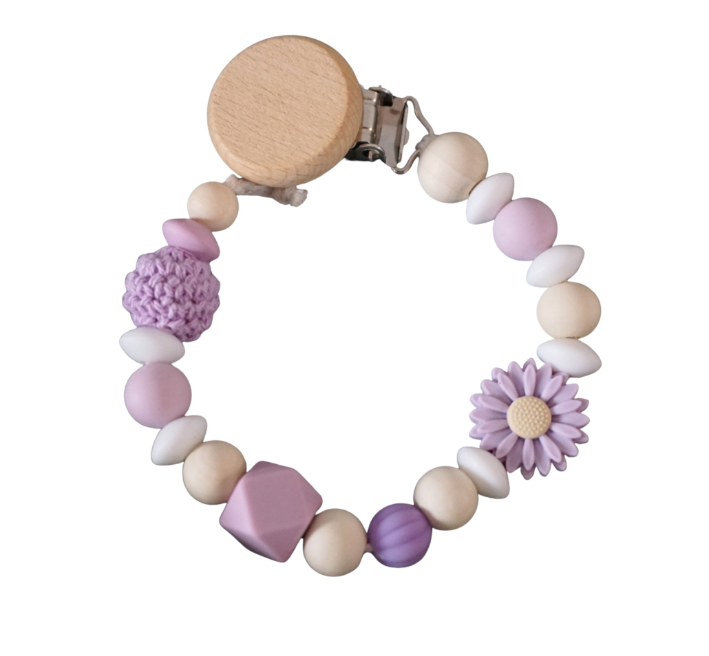 Perlen Schnullerkette lila „Blume“