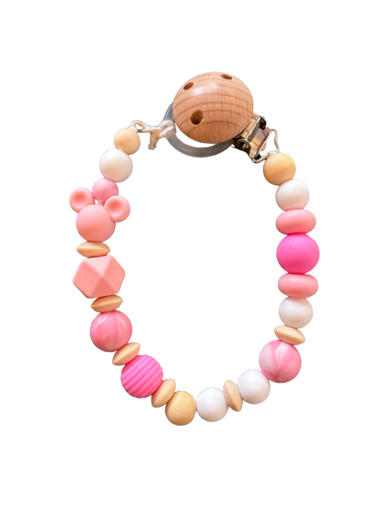 Perlen Schnullerkette in der Farbe Rosa mit einer MiniMaus – Perle