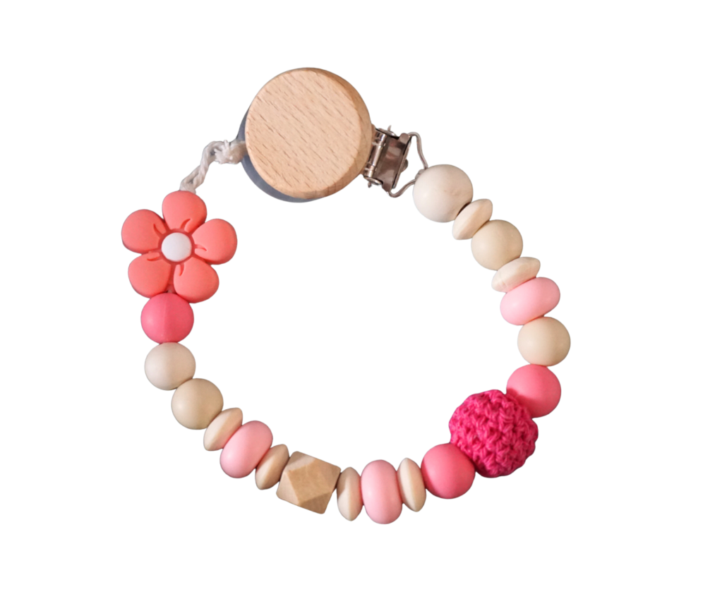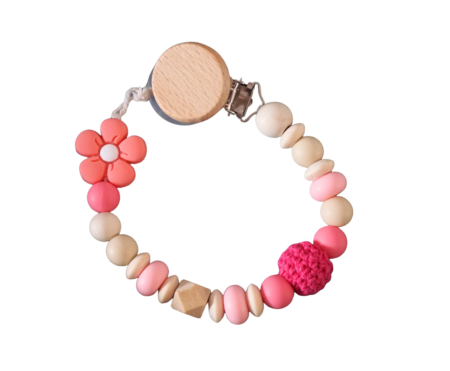 Schlagwörter: Blume, Holzperlen, Rosa, Silikonperlen