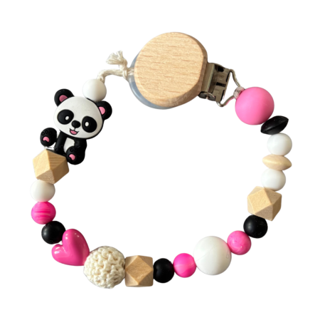 Perlen Schnullerkette rosa/schwarz „Panda“